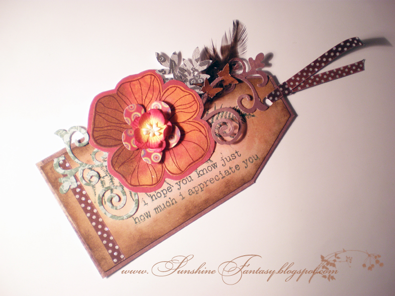 Да си призная не се сещам често да правя тагчета , но сега направих едно специално за третото предизвикателство на Miss Emerald . Получи се в стил винтидж с голямо червено цвете за акцент :)