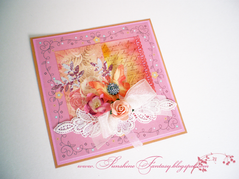 Радвам се , че намерих подходяща дантела и успях да направя картичка в стил шаби шик за първото предизвикателство на Miss Emerald . Получи се сравнително сполучлив краен резултат , като се има предвид , че обикновено използвам за картичките си по-ярки цветове ;)