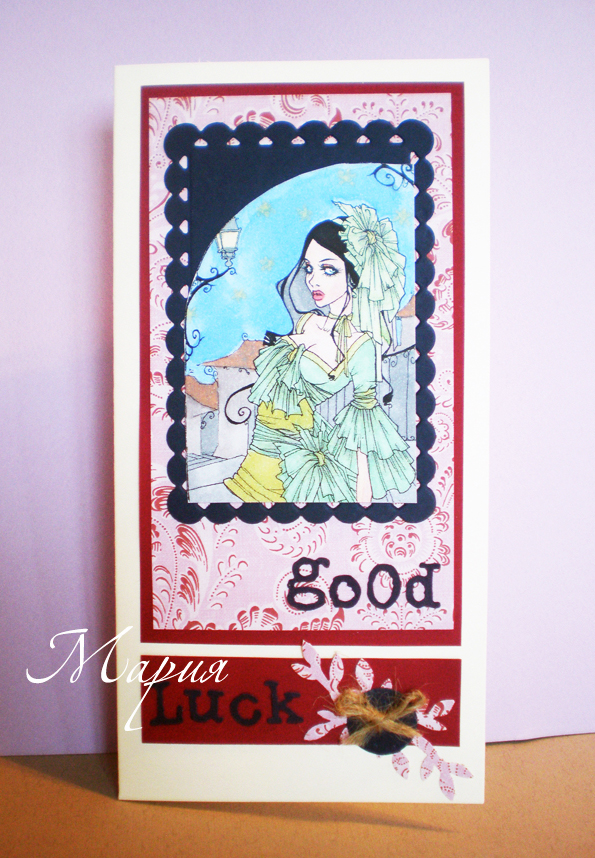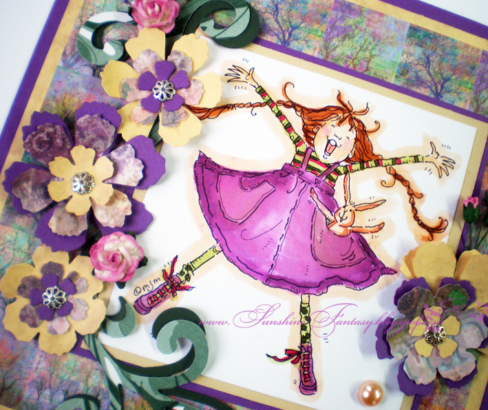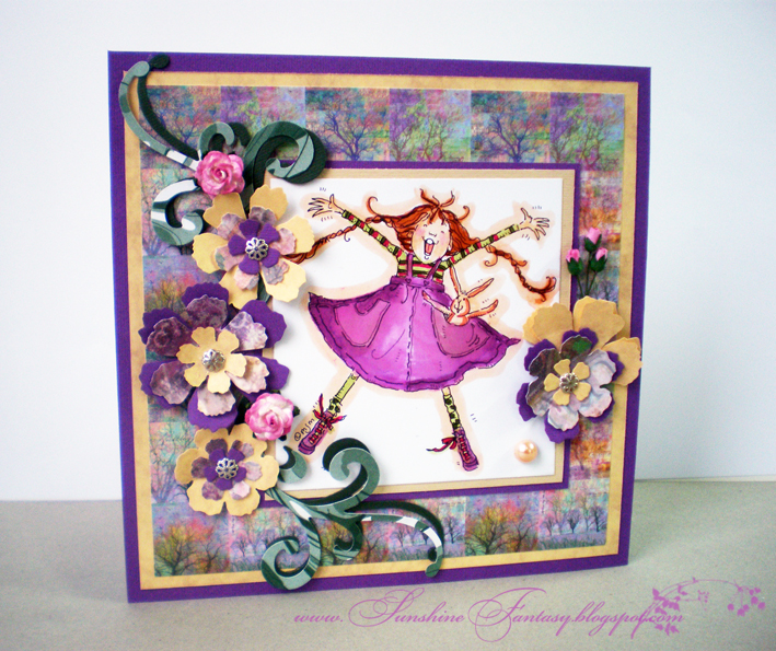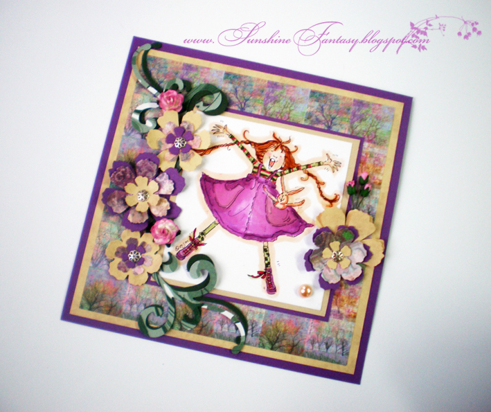 Нарекох тази картичка така , защото с нея се върна вдъхновението ми ! Не бях правила картички от няколко месеца и необяснимо за мен изобщо нямах никакво желание да правя . Но ето , че за рождения ден на една колежка от офиса ми се прииска да и подаря една от моите картички . Избрах да оцветя точно това момиченце , понеже и рожденничката е щура и импулсивна : ) Щастлива съм , че тя истински се зарадва , когато и я подарих : )
