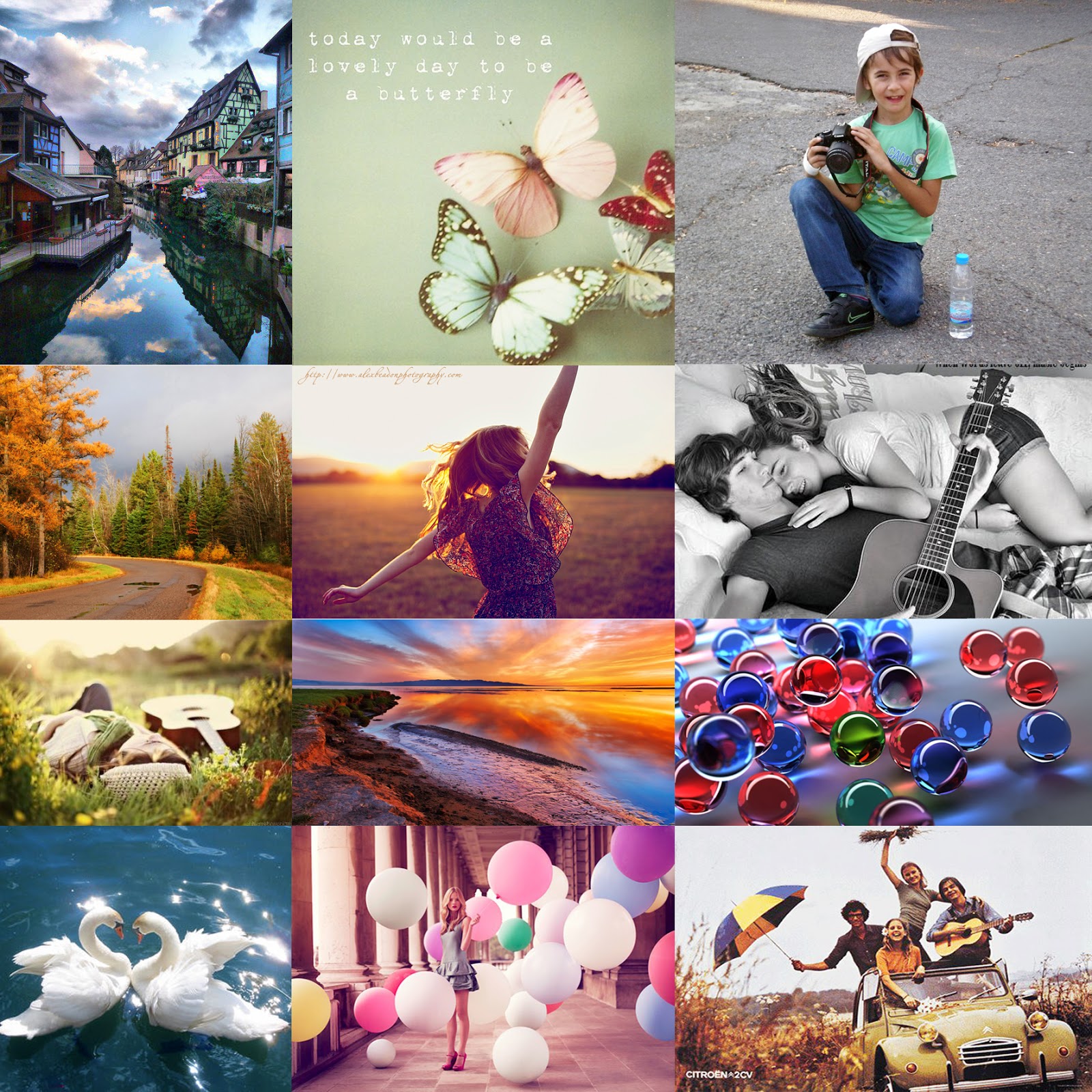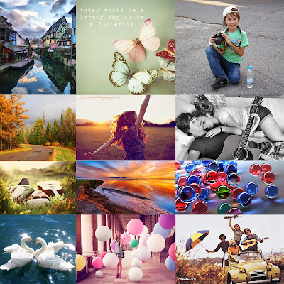 Това ме вдъхнови и избрах дума , която искам да свържа с предстоящата година : думата е Щастие . След което, също като Тони подбрах някой от любимите ми картинки и снимки , олицетворяващи избраната от мен дума и сглобих това колажче .