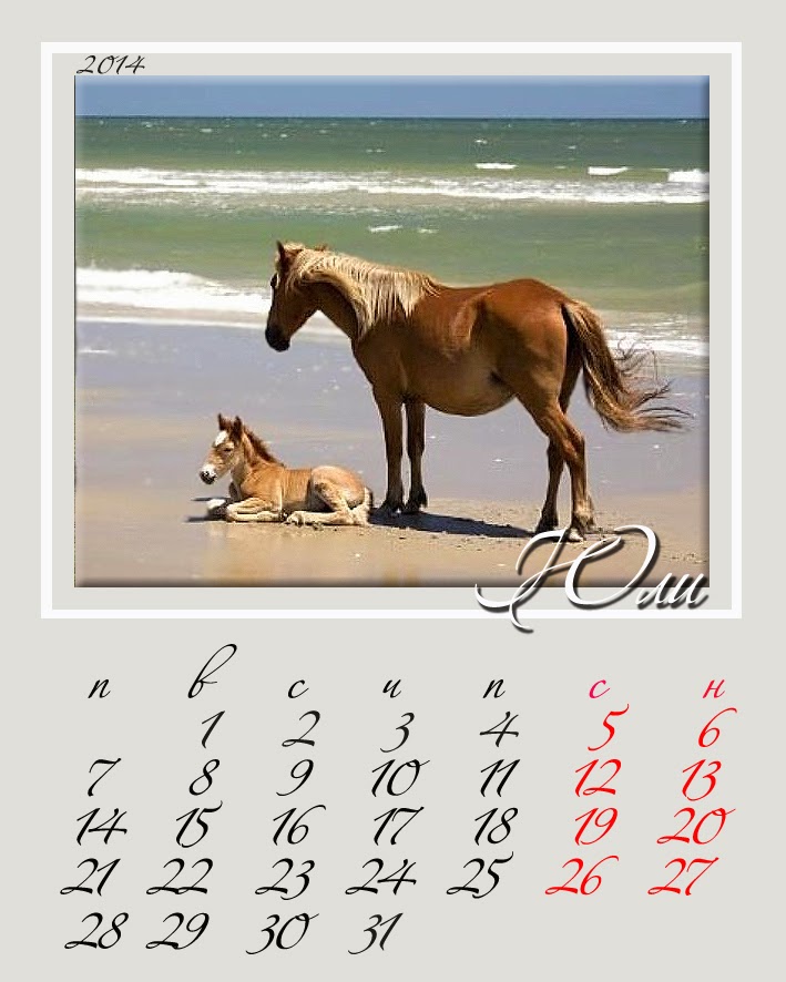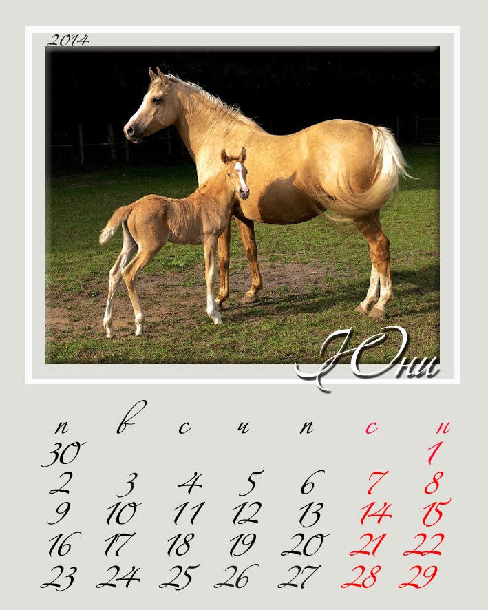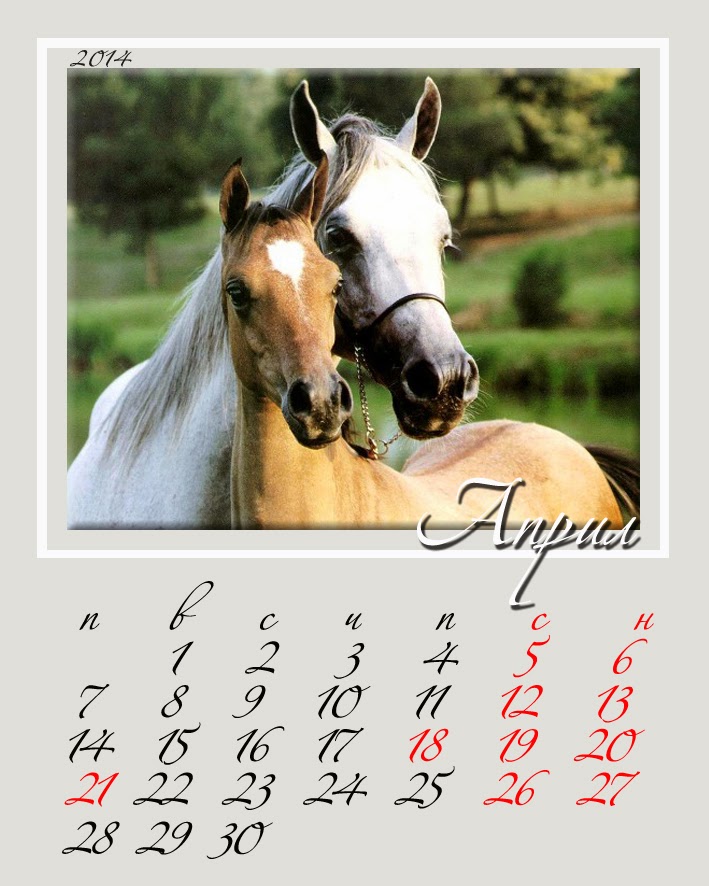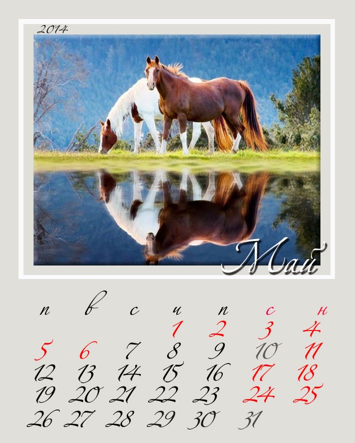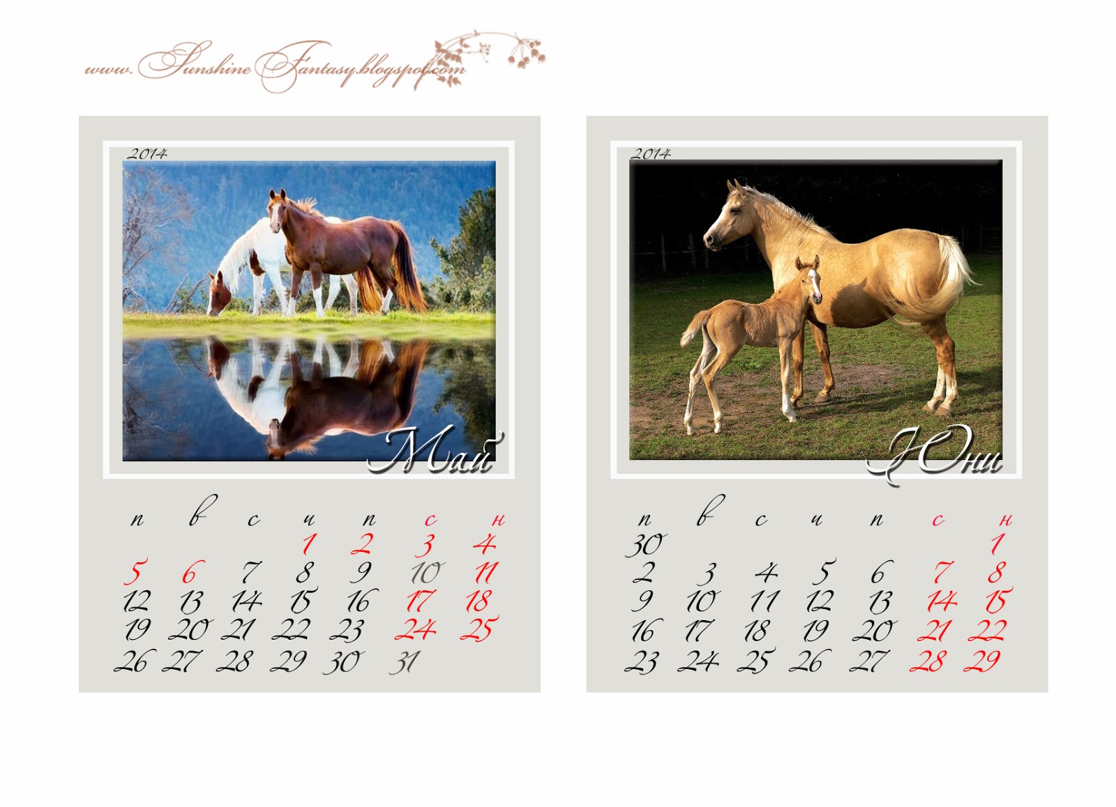 Най-сетне намерих малко време и много вдъхновение за да направя календар за 2014-та година . Избрах картинки с коне , от една страна защото на 31 януари настъпва Годината на Коня / по Китайския календар / , а от друга страна започнах много да харесвам конете покрай един мой приятел , който им е тотален фен и ги обожава !