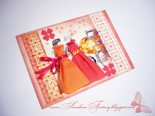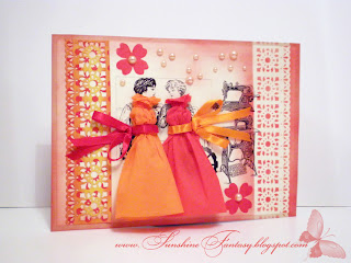 Викторианските дами ги бях приготвила за едно отминало предизвикателство на Двете елши - Стийм-пънк , за което не ми остана време тогава и така си останаха - незапочнати. Но ето , че днес реших да използвам картинката и с помощтта на тишу хартия създадох илюзия за текстил , от който са ушити техните рокли .