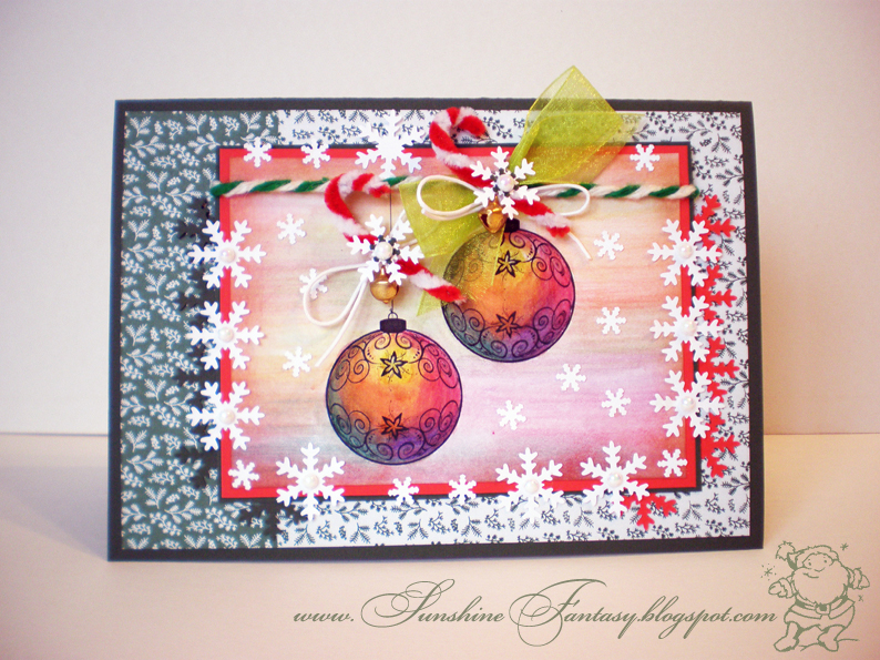 Светле, разкошна е картичката! Успяла си да й придадеш толкова живост! Топките сякаш са истински, а така поставени снежинките сякаш наистина се сипят, сипят! Напълни ми душата с красота и настроение!