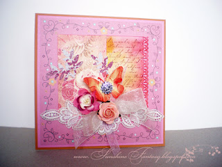 Радвам се , че намерих подходяща дантела и успях да направя картичка в стил шаби шик за първото предизвикателство на Miss Emerald . Получи се сравнително сполучлив краен резултат , като се има предвид , че обикновено използвам за картичките си по-ярки цветове ;)