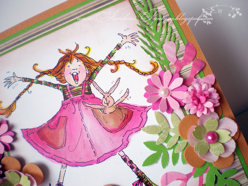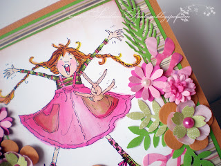 3. Много весела и цветна картичка! Харесва ми оцветяването на момичето, а цветенцата са прелестни! :)